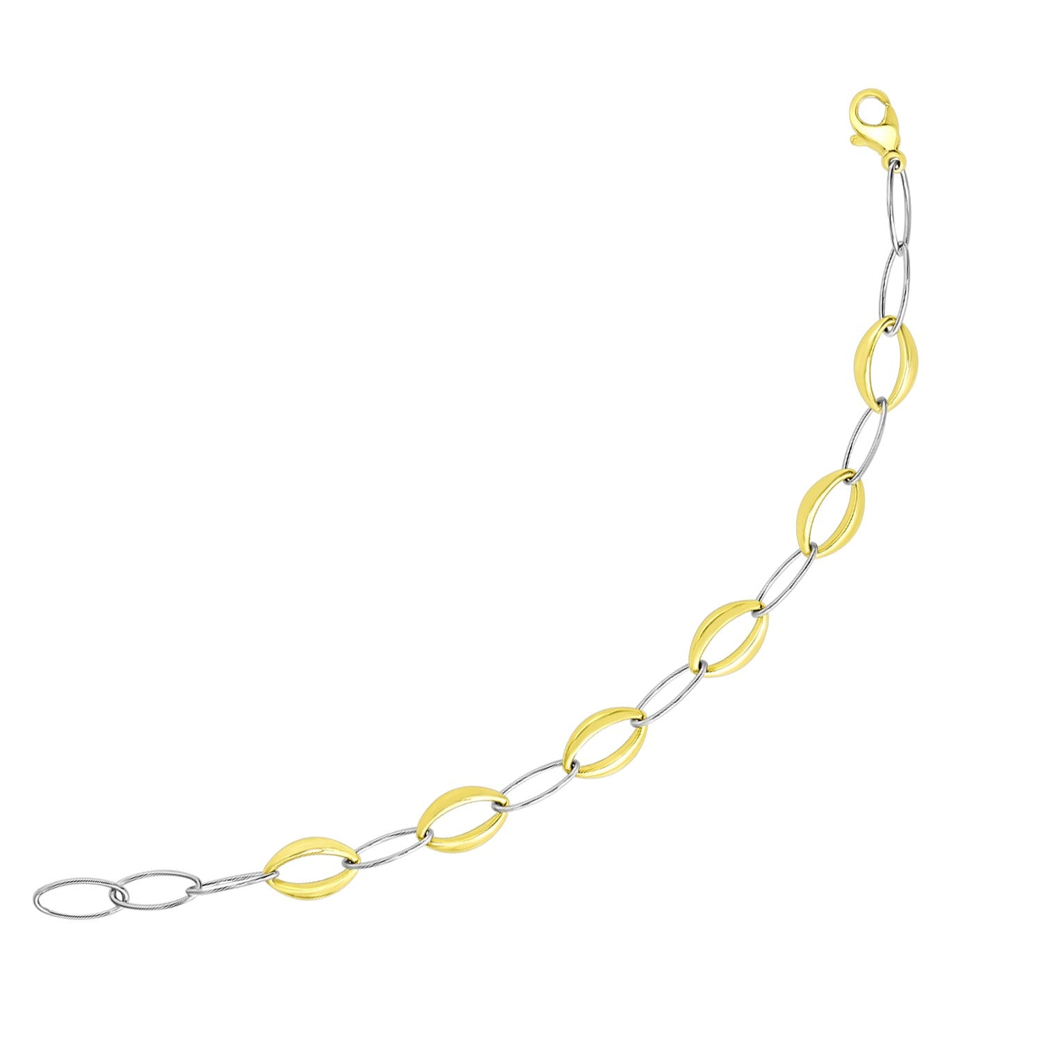 Positively enchanting in its simple elegance, this bracelet features thin and graduated oval shape sections. Made of 14k two-tone gold, this measures 7 1/2 inches and is secured with a lobster lock.