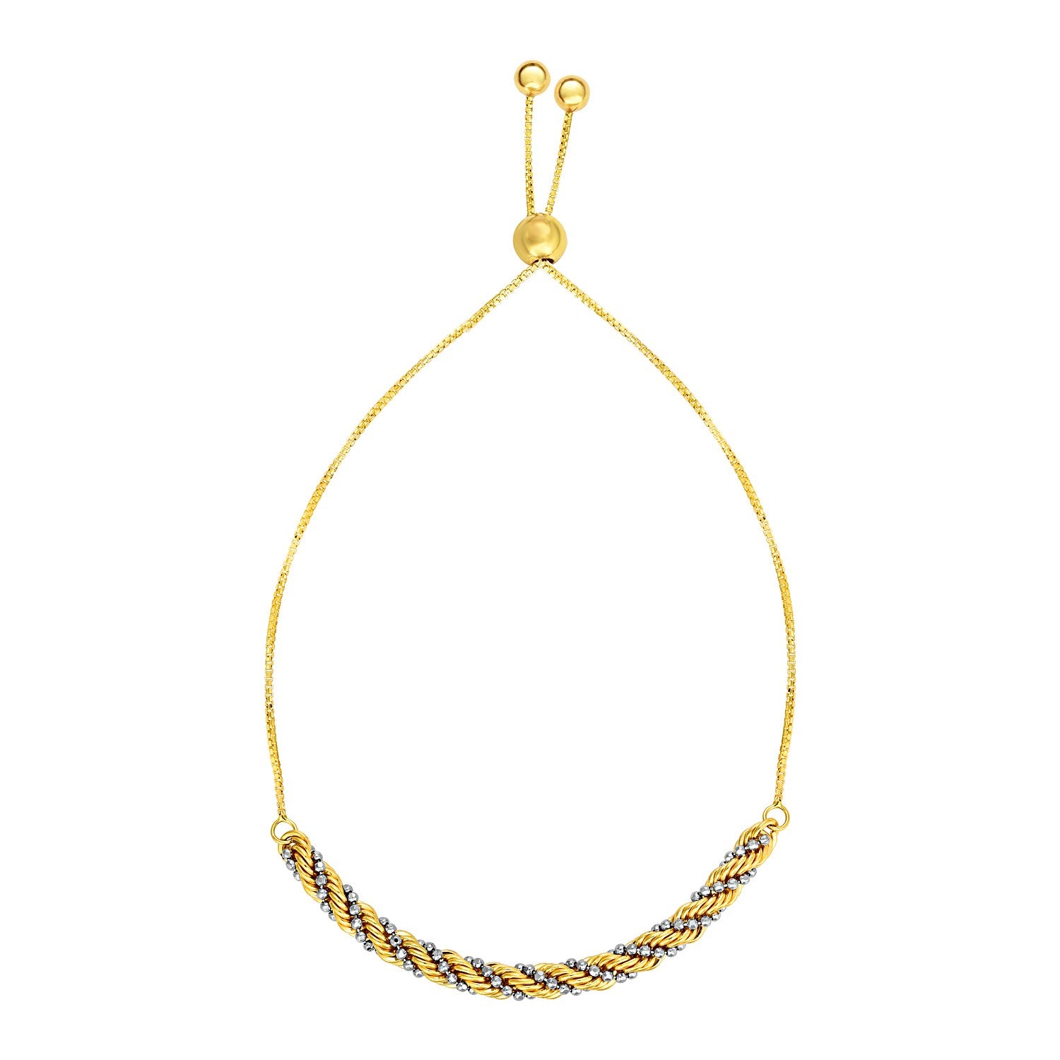 Adjustable Twisted Chain Bracelet in 14k Yellow and White Gold
