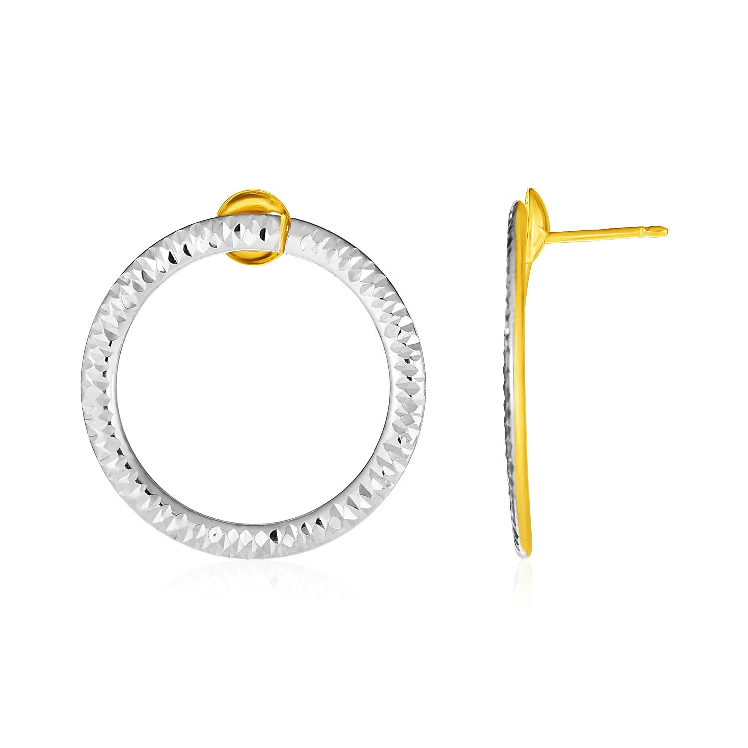 14k Two Tone Gold Circle Earrings with Diamond Cut Texture