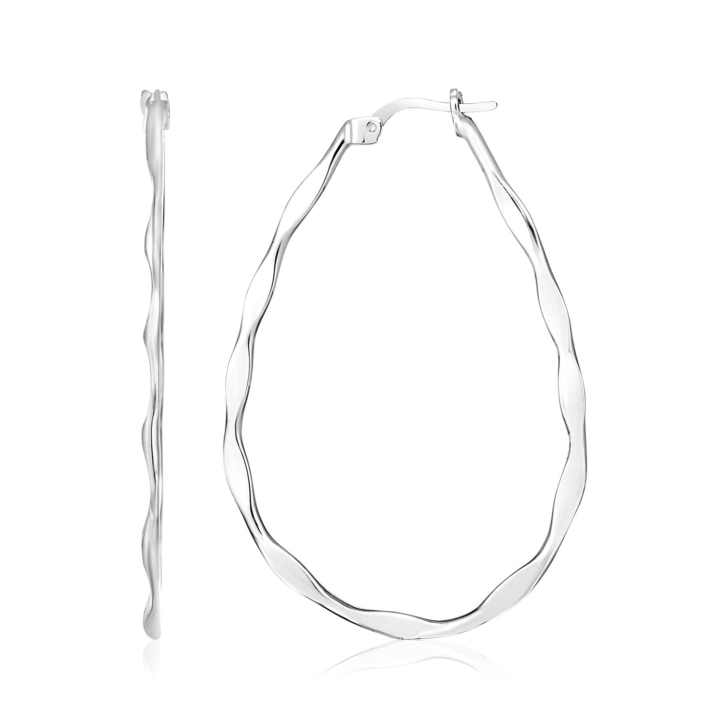 Light reflects and glimmers from the unique wavy, polished surface of these intriguing teardrop-shaped sterling silver hoop earrings. Earrings are held in place by hinged clasps.