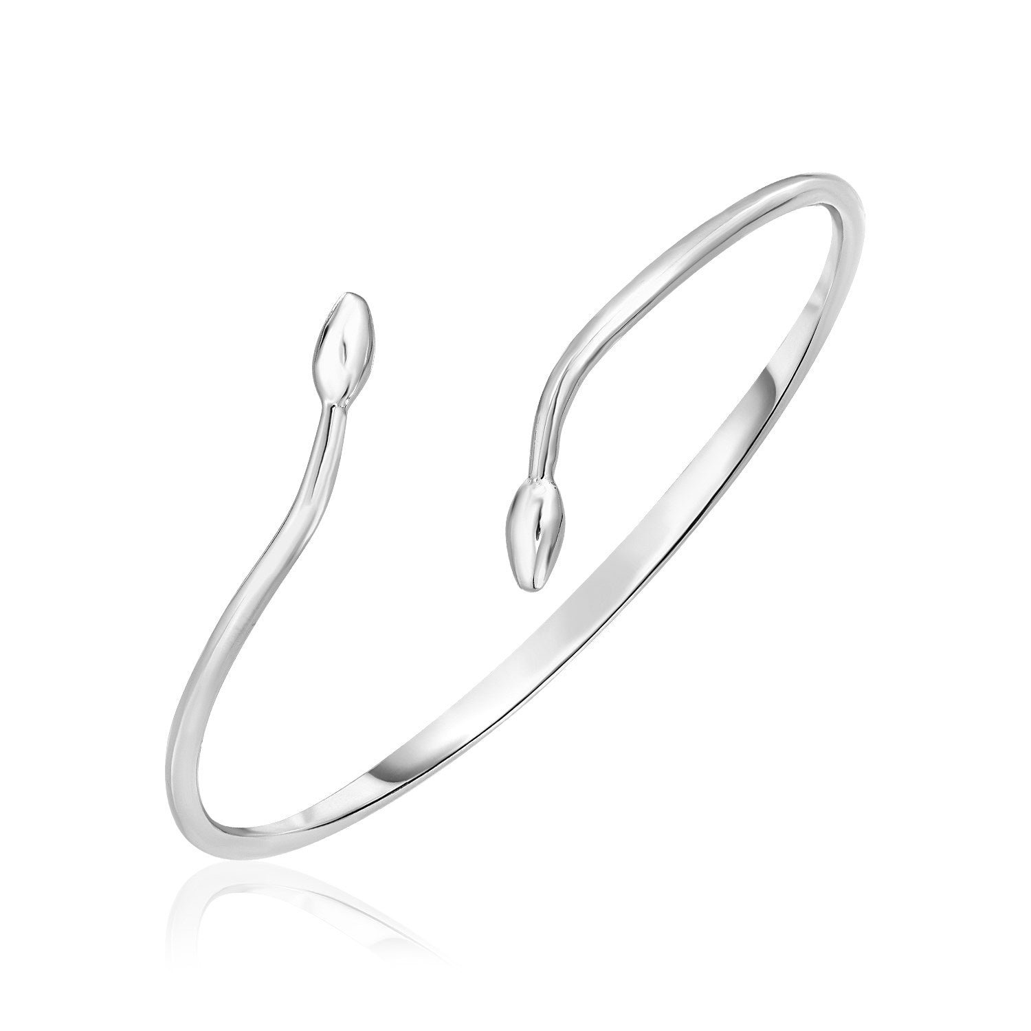 This exquisite bypass bangle features an abstract leaf-like shape on each end and the fiery polish of sterling silver.