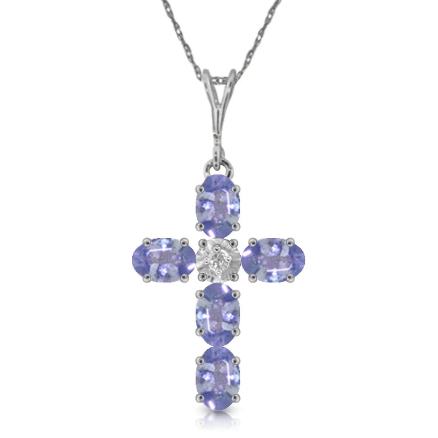 • 1.75 Carat 14K Solid White Gold Cross Necklace Natural Diamond Tanzanite