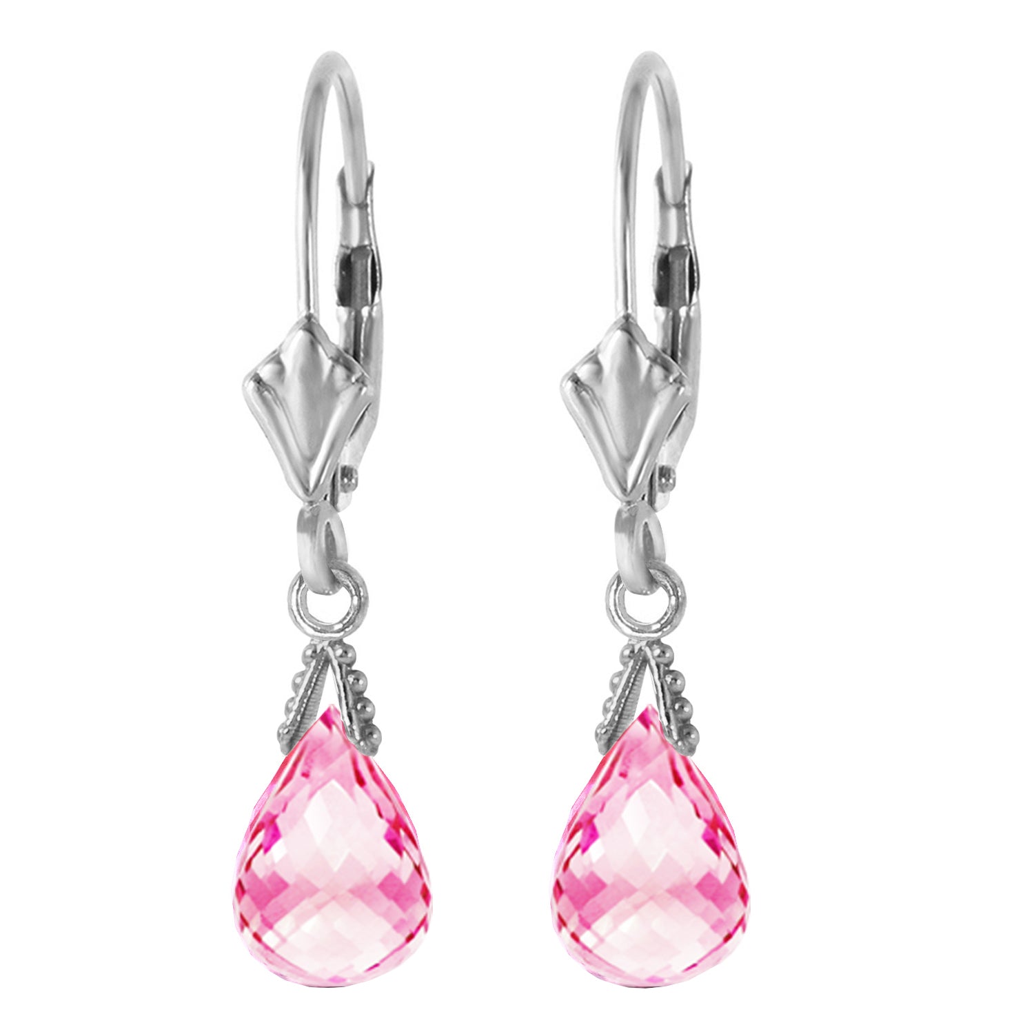 4.5 Carat 14K Solid White Gold Leverback Earrings Briolette Pink Topaz