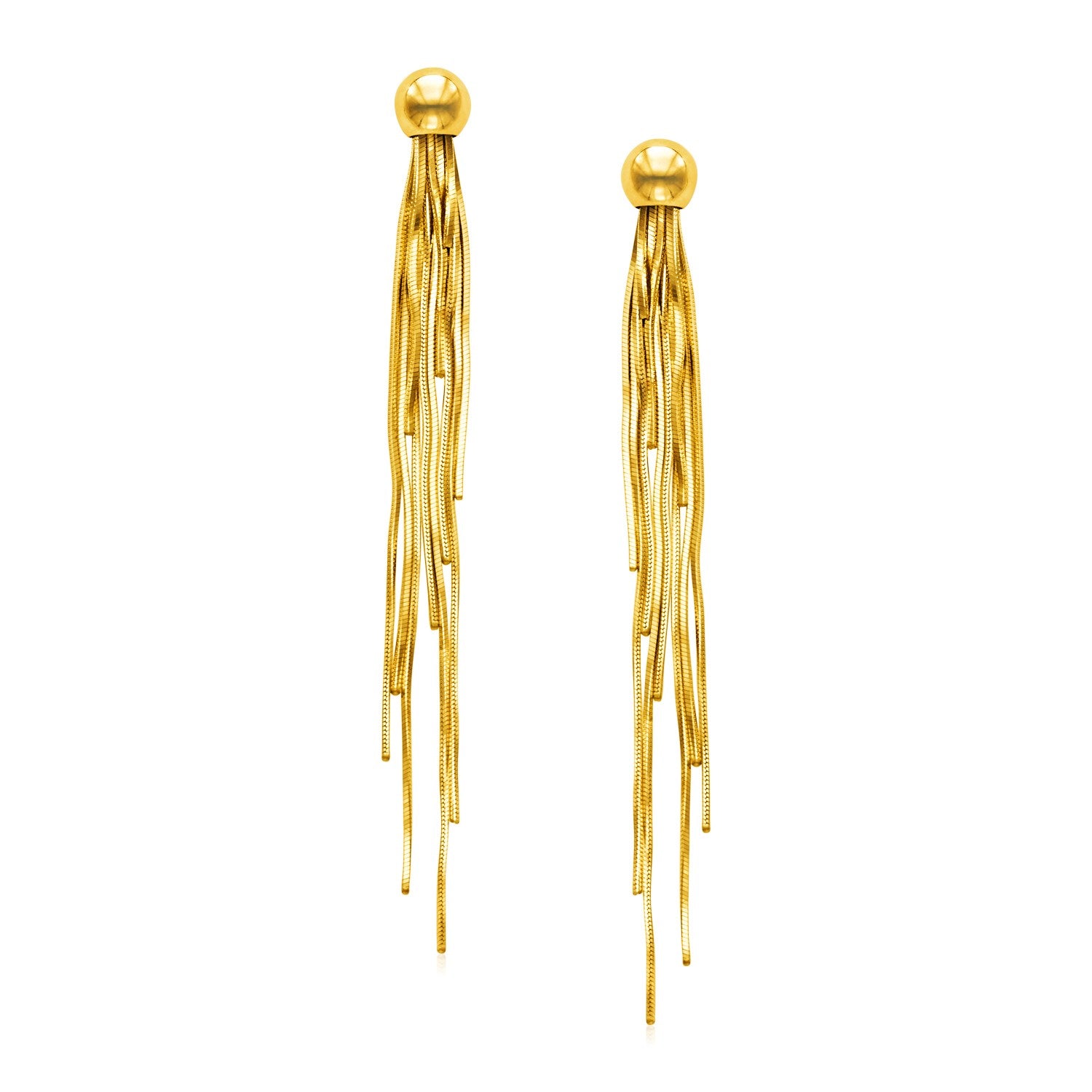 Polished lengths of 14k yellow gold fall like a waterfall from elegant post earrings. Earrings are 65mm long and are held in place by pushback clasps.