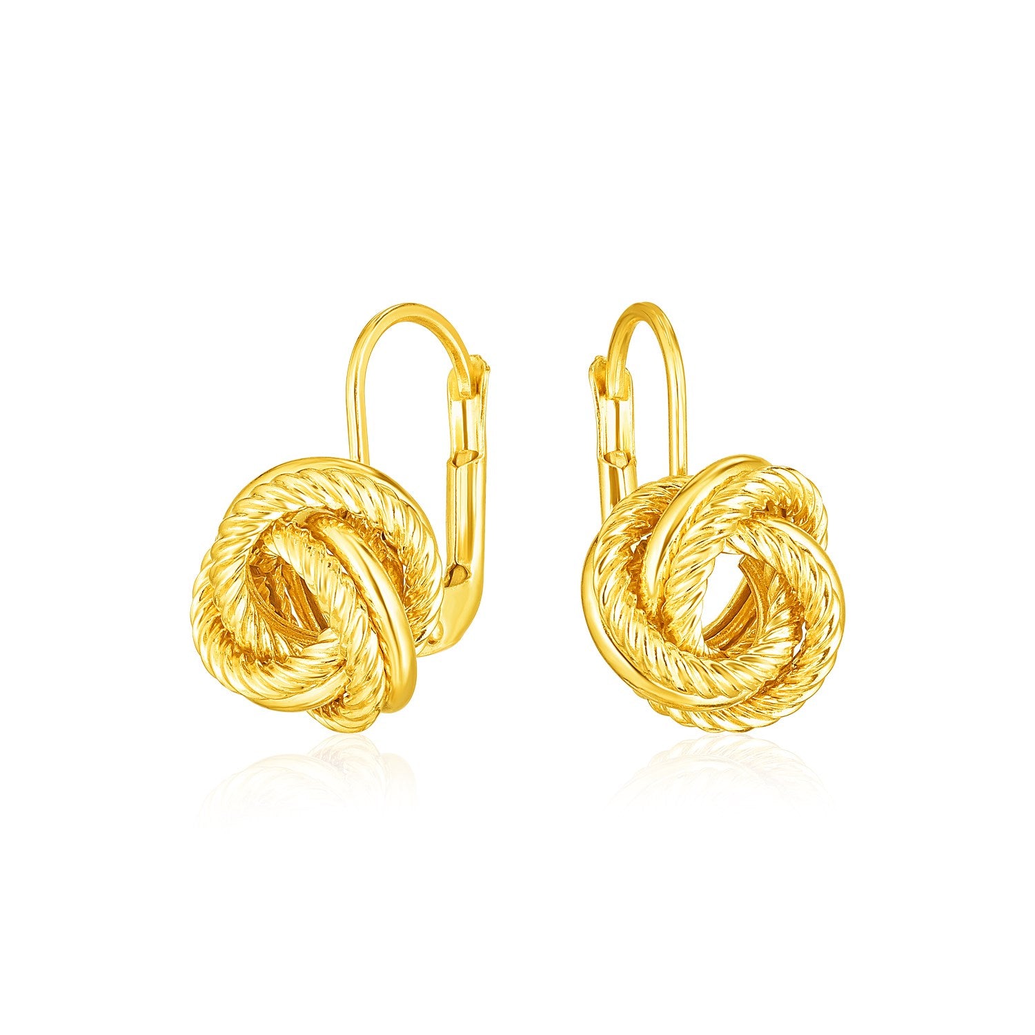 Ropelike strands of textured 14k yellow gold tighten to form a classic love knot and float slightly below your lobes on elegant wire. Earrings are 11mm long and hang from lever back clasps.