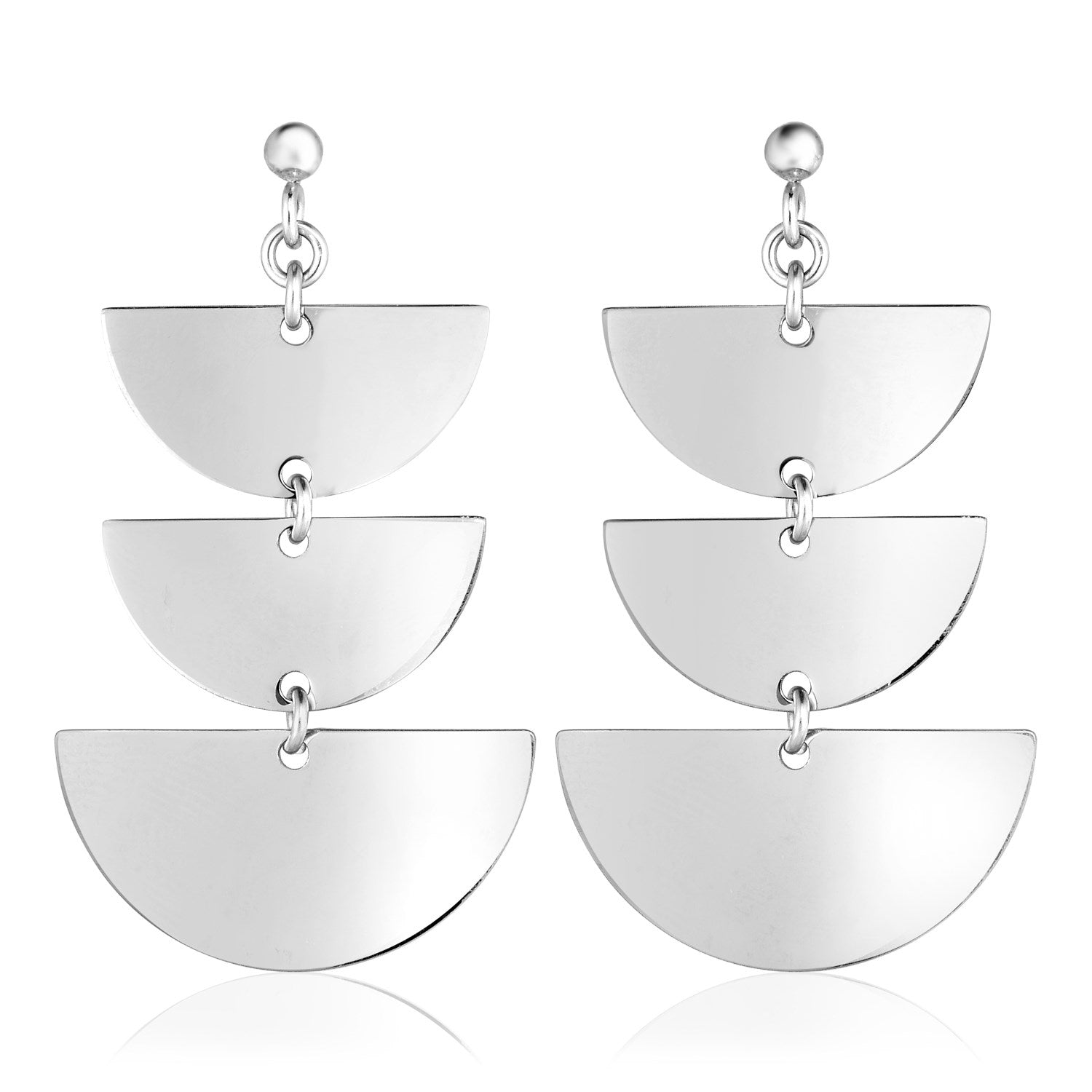 Sterling Silver Dangle Earrings with Three Polished Half Circles