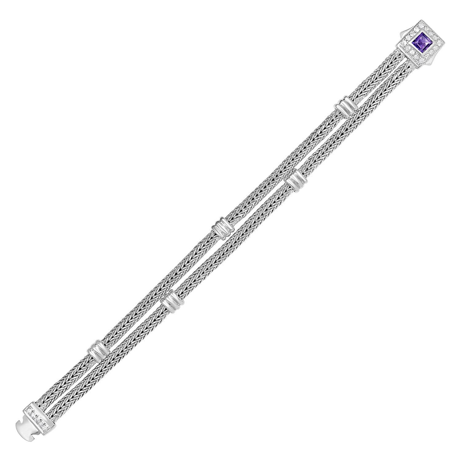Two Strand Woven Bracelet with Amethyst and White Sapphires in Sterling Silver