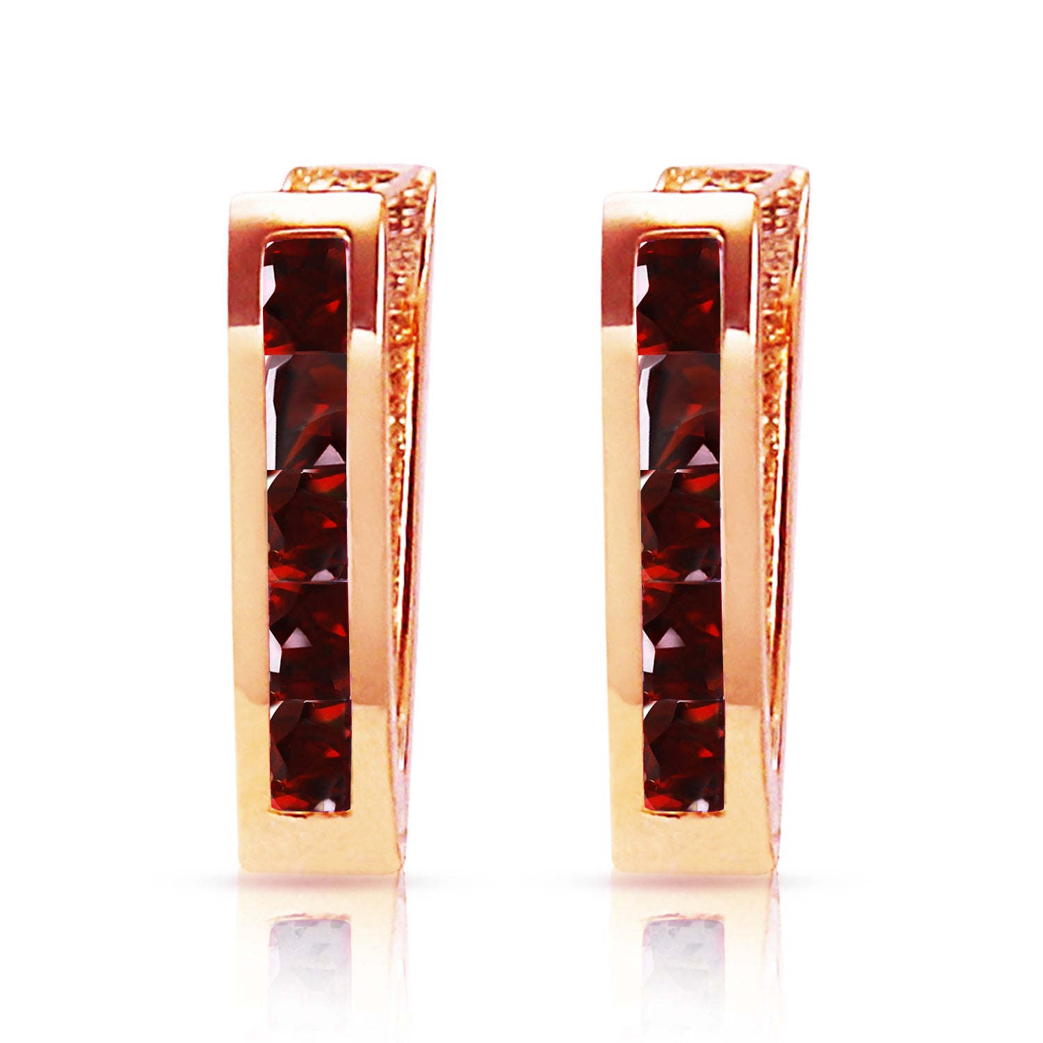 1.3 Carat 14K Solid Rose Gold Oval Huggie Earrings Garnet