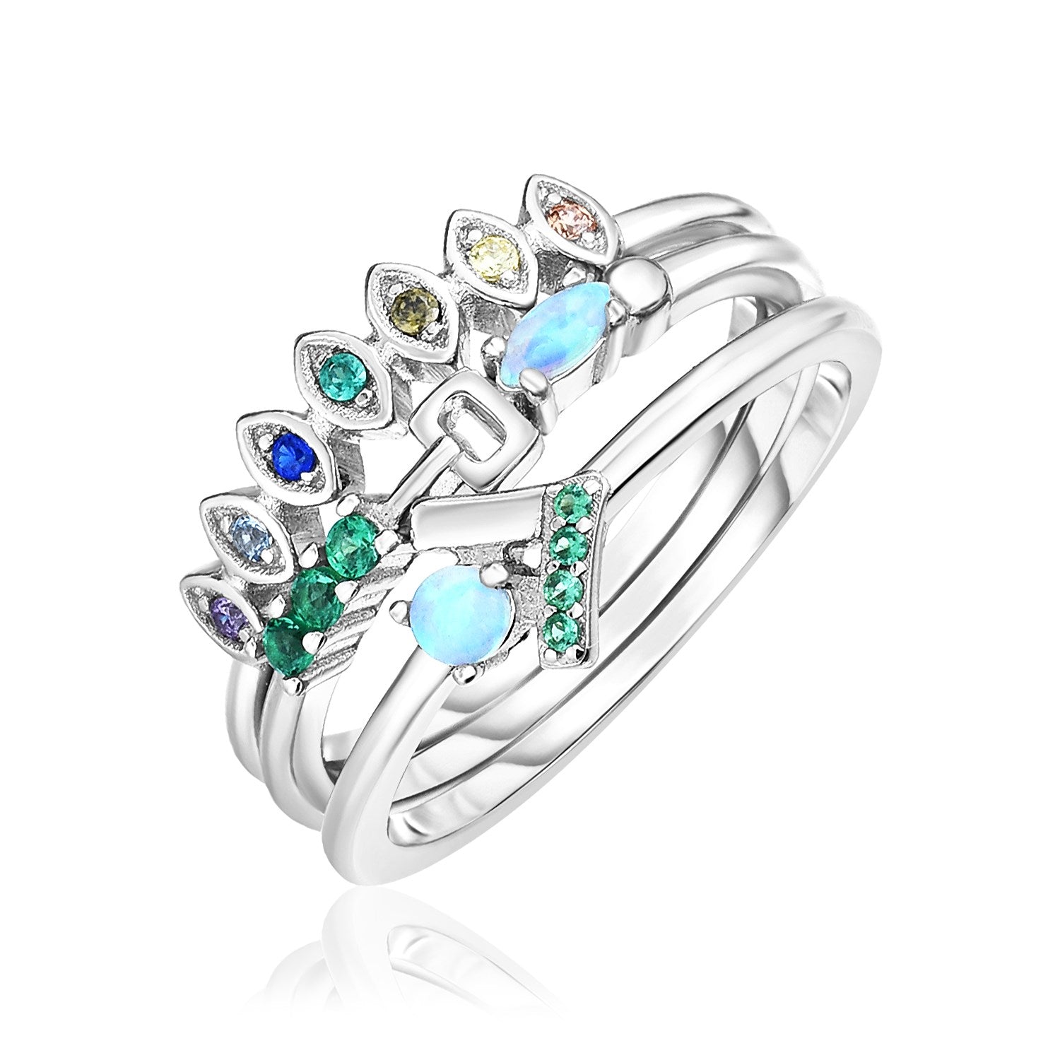 Sterling Silver Three Piece Stackable Set with Blue and Green Cubic Zirconias