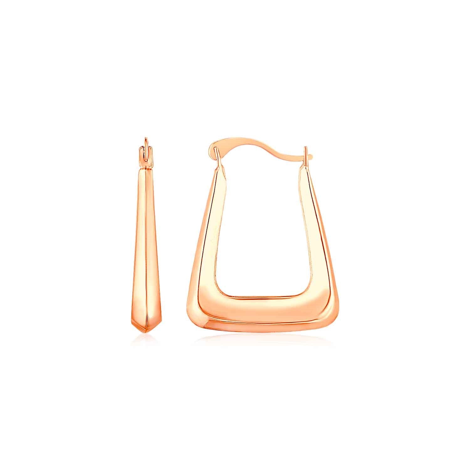 The geometry of a square profile meets the elegance and luxury of polished 14k rose gold in these beautiful hoop earrings. Earrings are 21.7mm long and are held in place by hinged clasps.