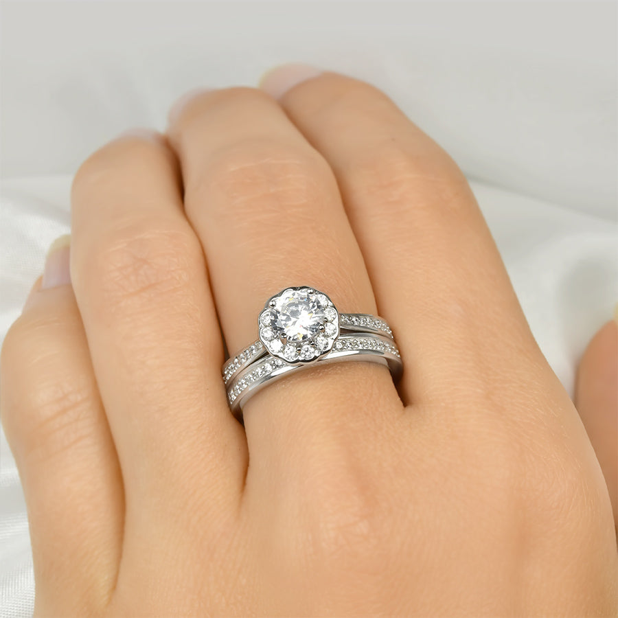 Sterling Silver 1.15 Carat Flower Design Bridal Ring Set Comfort Fit