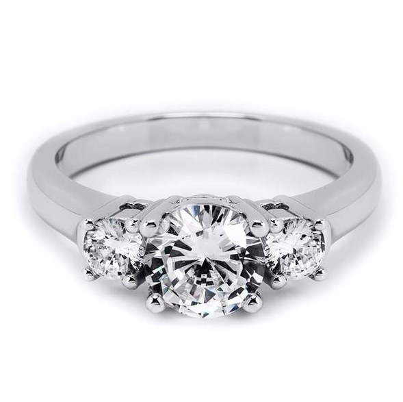 925 Sterling Silver Platinum Finish Brilliant Three Stone Engagement Ring