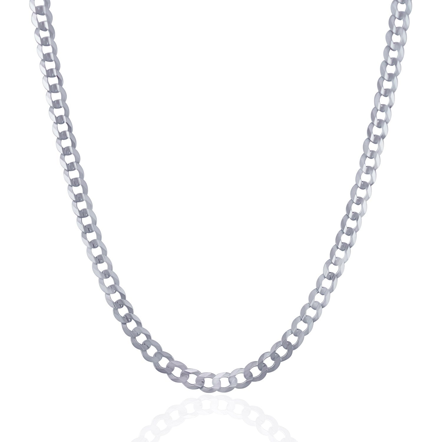 This solid curb chain comes in 14k white gold and has a width of 4.7 millimeters.
