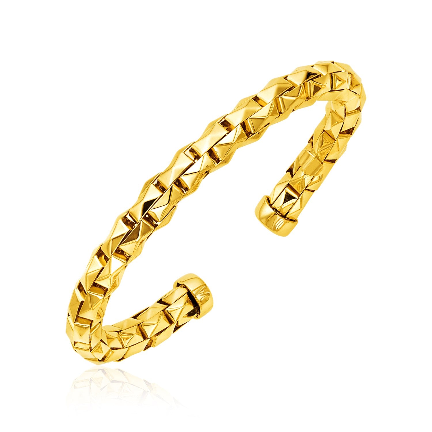 14k Yellow Gold Polished Pyramid Link Cuff Bangle
