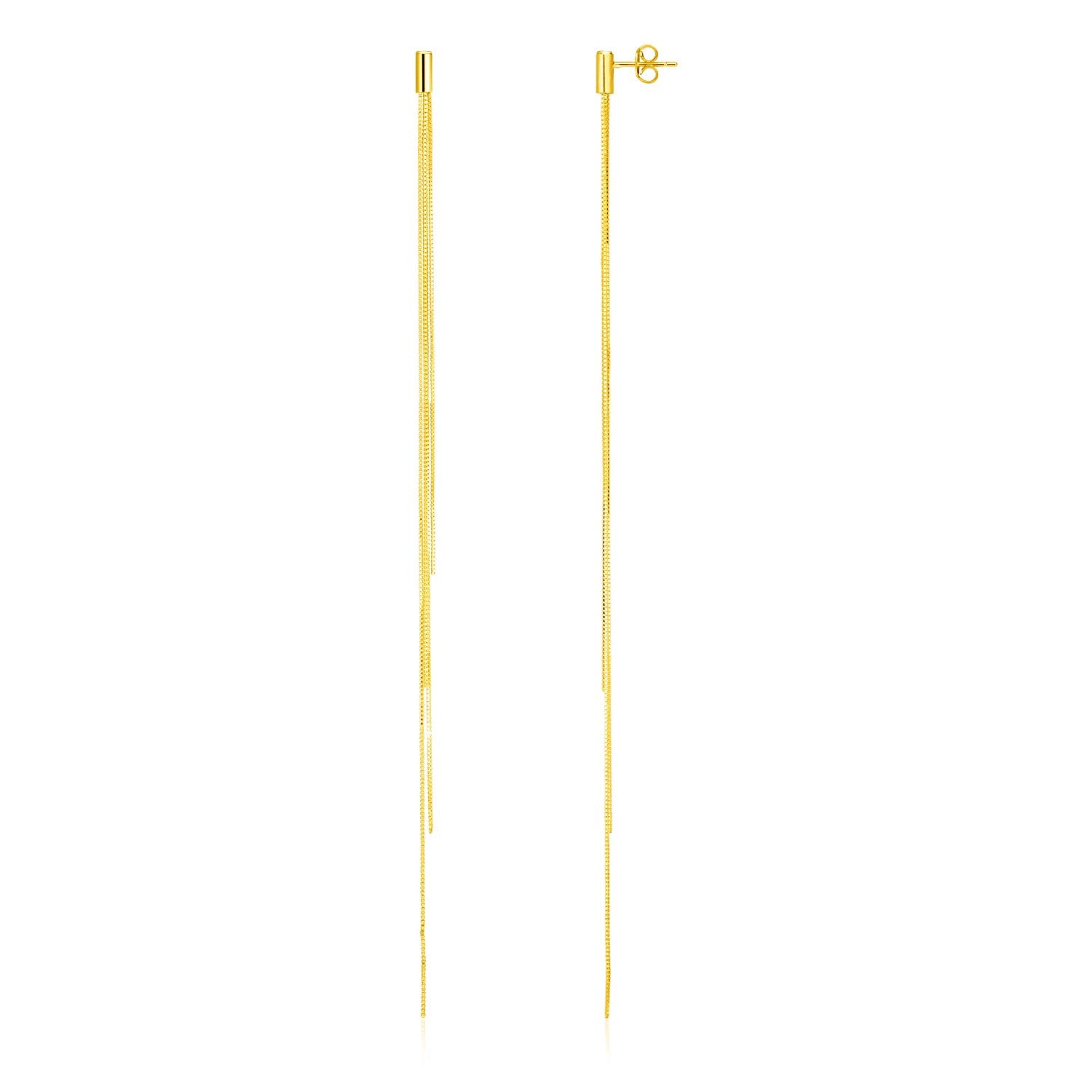 Lovely streams of fine polished gold chain will dance and swing with your every move when you wear these eye-catching 14k yellow gold post earrings. Post earrings are held in place by pushback clasps.