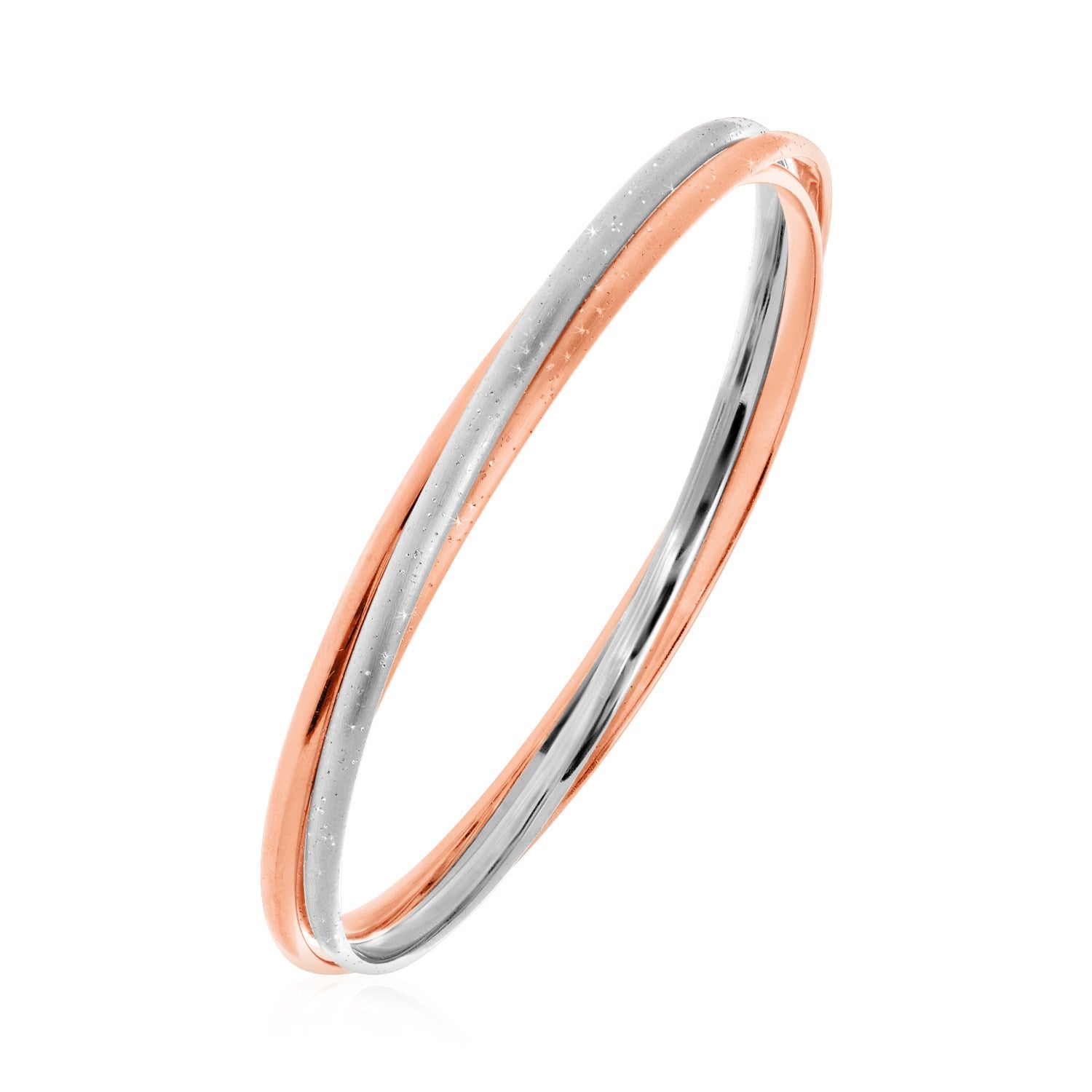 Textured Interlocking White and Rose Finish Bangle in Sterling Silver